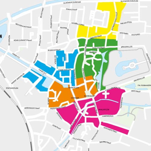 Rondje Noord, das Groot Gravenkwartier, Stadshart, Stadskade und der Kop van Zuid, fünf verschiedene Viertel, die durch die gastfreundlichen Unternehmer im Stadtzentrum miteinander verbunden sind. Vom historischen Groot Gravenkwartier, wo man noch immer die Hufe der Pferde hören kann, bis hin zum Ausgehviertel Kop van Zuid am Amaliaplein ist hier alles vertreten.